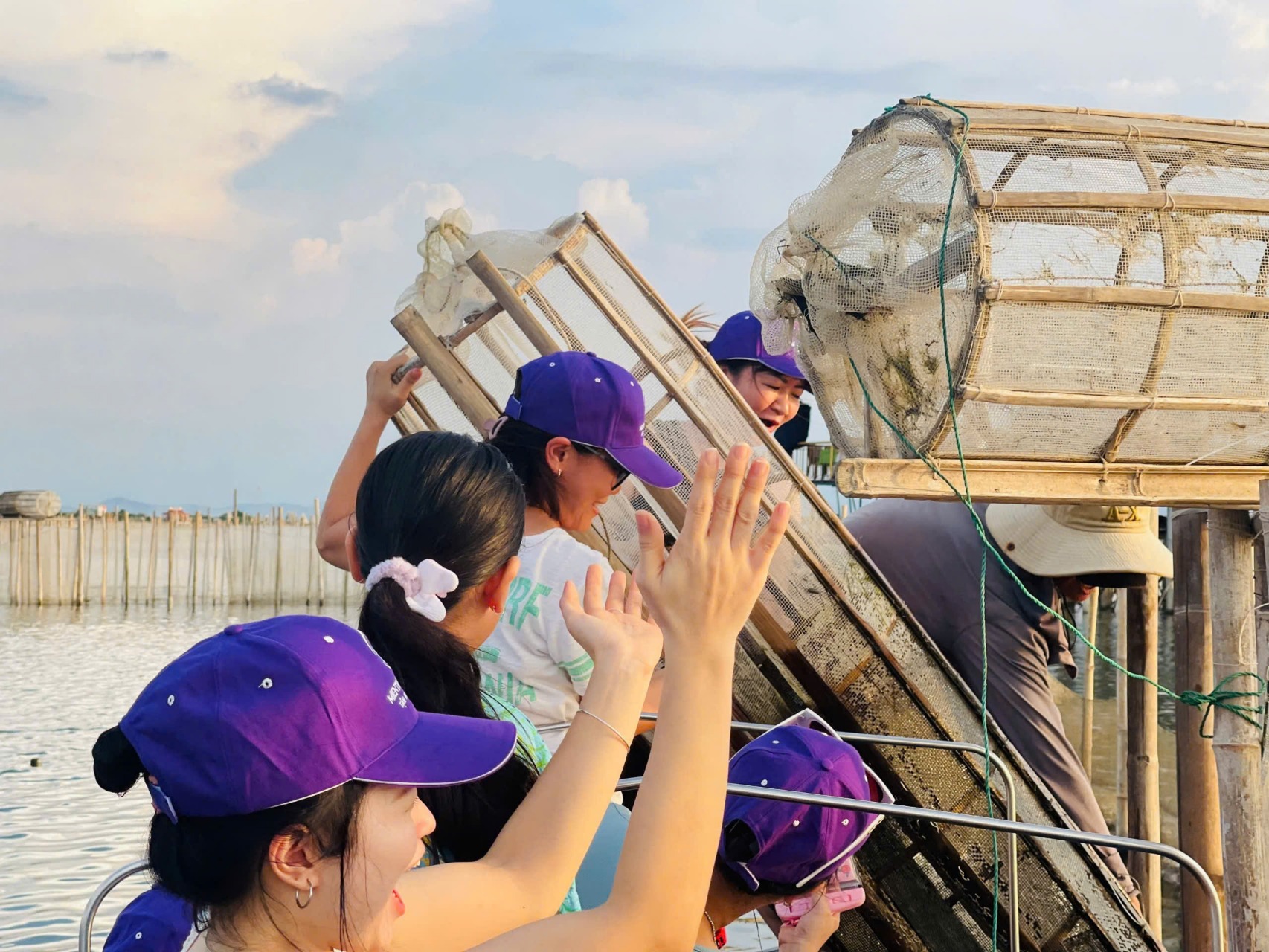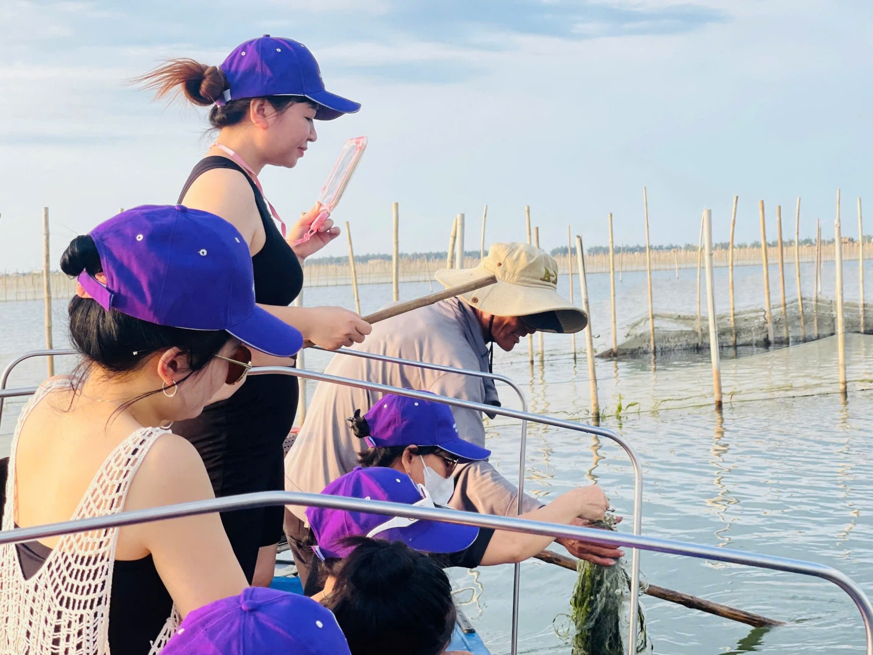 Là điểm nhấn đáng nhớ nhất: hành trình về Phá Tam Giang – Đầm Chuồn. Du khách băng qua Đập Thảo Long, rừng ngập mặn Rú Chá, lên thuyền khám phá không gian sông nước mênh mang. Khi hoàng hôn buông xuống, sắc tím phủ khắp đầm phá, đoàn tham gia kéo lưới, bắt cá, dùng bữa tối với hải sản địa phương ngay trên phá – một trải nghiệm rất “Huế”.